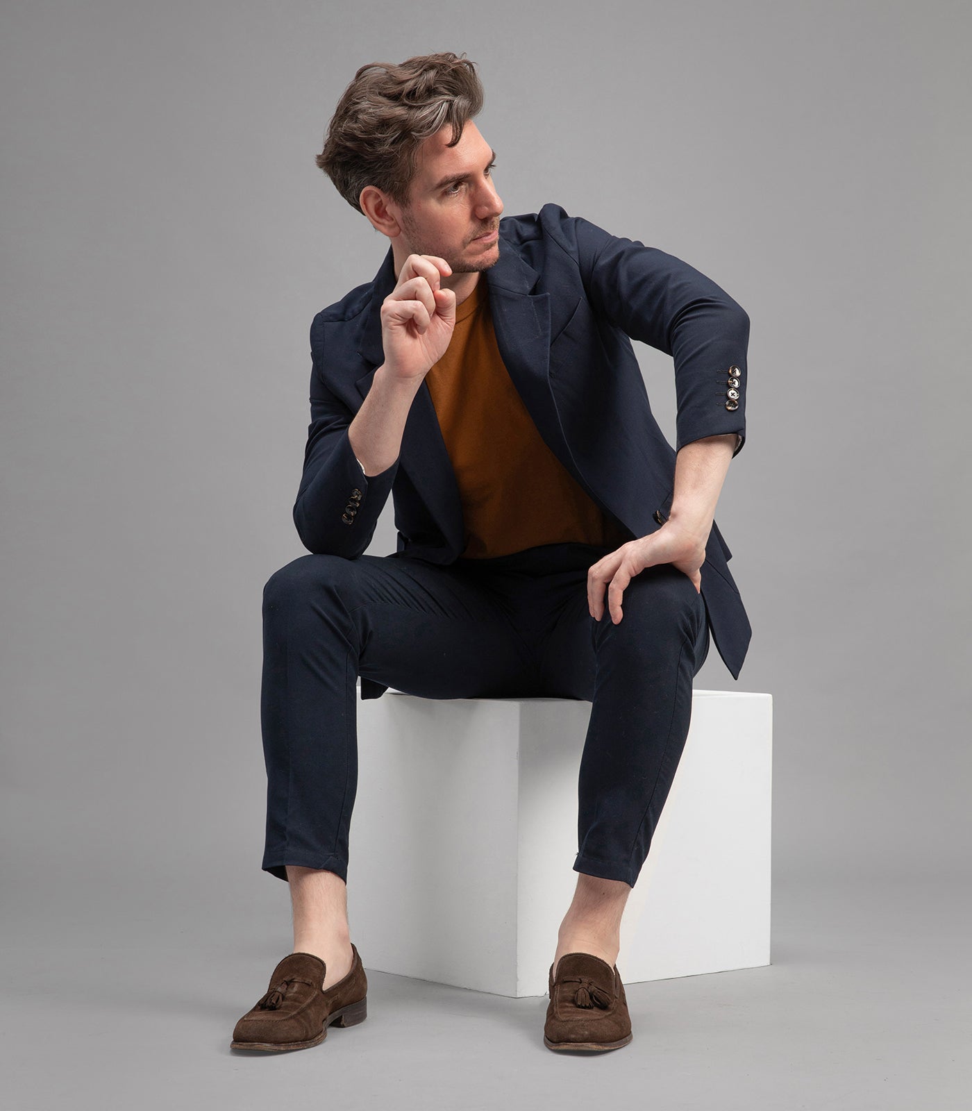 The Laurent Vergne logo, a small tree, refers to the "Vergne" tree species. It symbolizes the deep roots of the brand. Laurent’s childhood was spent between his family’s menswear shop in Brive and the grandeur of French estates. His upbringing in southwest France remains a major inspiration for his timeless designs. From his grandparents’ patisseries to the elegance of horseback riding, skiing, and tennis – the essence of the French joie de vivre is woven into every detail of his collections.